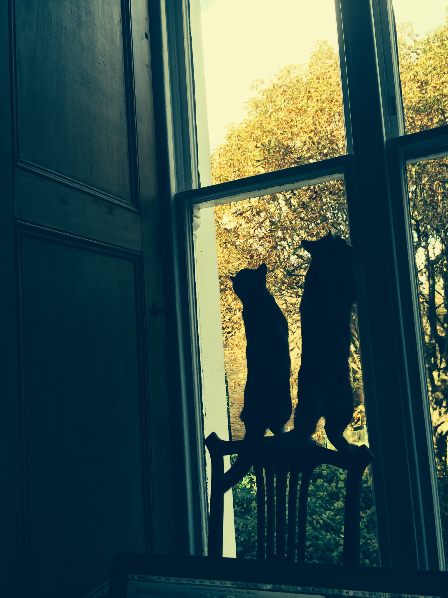 Spidercats 13 Monday Oct 2014 Posted by Caro Field in poetry ≈ 3 Comments If we stretch ourselves out and reach up high, We might just catch that pesky fly Balancing here, on our tippy toes, WILL we swat it, do you suppose? We’re swift and sure, we’re acrobats, We.’re your archetypal spider cats! 51.426466 -0.068634 Share this: Click to share on X (Opens in new window) X Click to share on Facebook (Opens in new window) Facebook Click to share on LinkedIn (Opens in new window) LinkedIn Click to email a link to a friend (Opens in new window) Email Click to share on Pinterest (Opens in new window) Pinterest Like Loading...