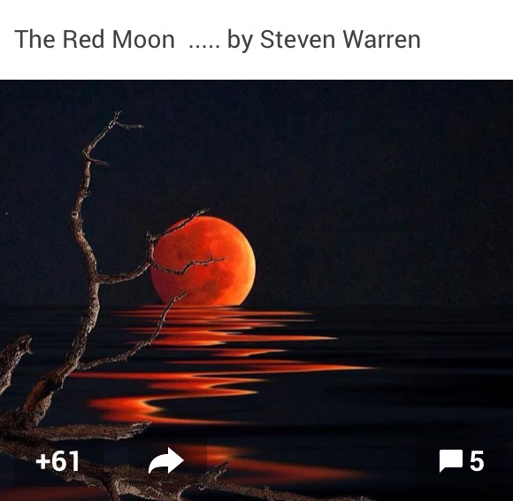 Blood Moon 01 Thursday Oct 2015 Posted by Caro Field in poetry ≈ Leave a comment The supermoon is full in its perigee. Seeming huge in the sky, Its close orbit to Earth, at 226,000 miles, Means it becomes a spectacular colour As earth’s shadow passes over it. Full moon, Red moon, Supermoon, Blood moon. © Caro Ness 2015 Share this: Click to share on X (Opens in new window) X Click to share on Facebook (Opens in new window) Facebook Click to share on LinkedIn (Opens in new window) LinkedIn Click to email a link to a friend (Opens in new window) Email Click to share on Pinterest (Opens in new window) Pinterest Like Loading...