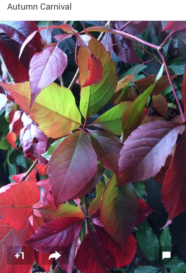 Autumn Carnival 28 Monday Dec 2015 Posted by Caro Field in poetry ≈ Leave a comment Leaves in Autumn, leaves in Fall, Without any discernible effort at all, Hang like faceted jewels on the tree, In a grand technicolour symmetry, Purple, burgundy, crimson, green, Clustered colours with a definite sheen. © Caro Ness 2015 Share this: Click to share on X (Opens in new window) X Click to share on Facebook (Opens in new window) Facebook Click to share on LinkedIn (Opens in new window) LinkedIn Click to email a link to a friend (Opens in new window) Email Click to share on Pinterest (Opens in new window) Pinterest Like Loading...