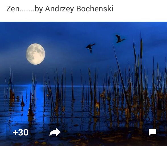 Zen 15 Friday Jan 2016 Posted by Caro Field in poetry ≈ Leave a comment A fullish moon, A blue sky, Blue lake, Birds passing by. A line of reeds, Black on blue, Peaceful panorama, Zen-like view. © Caro Ness 2016 Share this: Click to share on X (Opens in new window) X Click to share on Facebook (Opens in new window) Facebook Click to share on LinkedIn (Opens in new window) LinkedIn Click to email a link to a friend (Opens in new window) Email Click to share on Pinterest (Opens in new window) Pinterest Like Loading...
